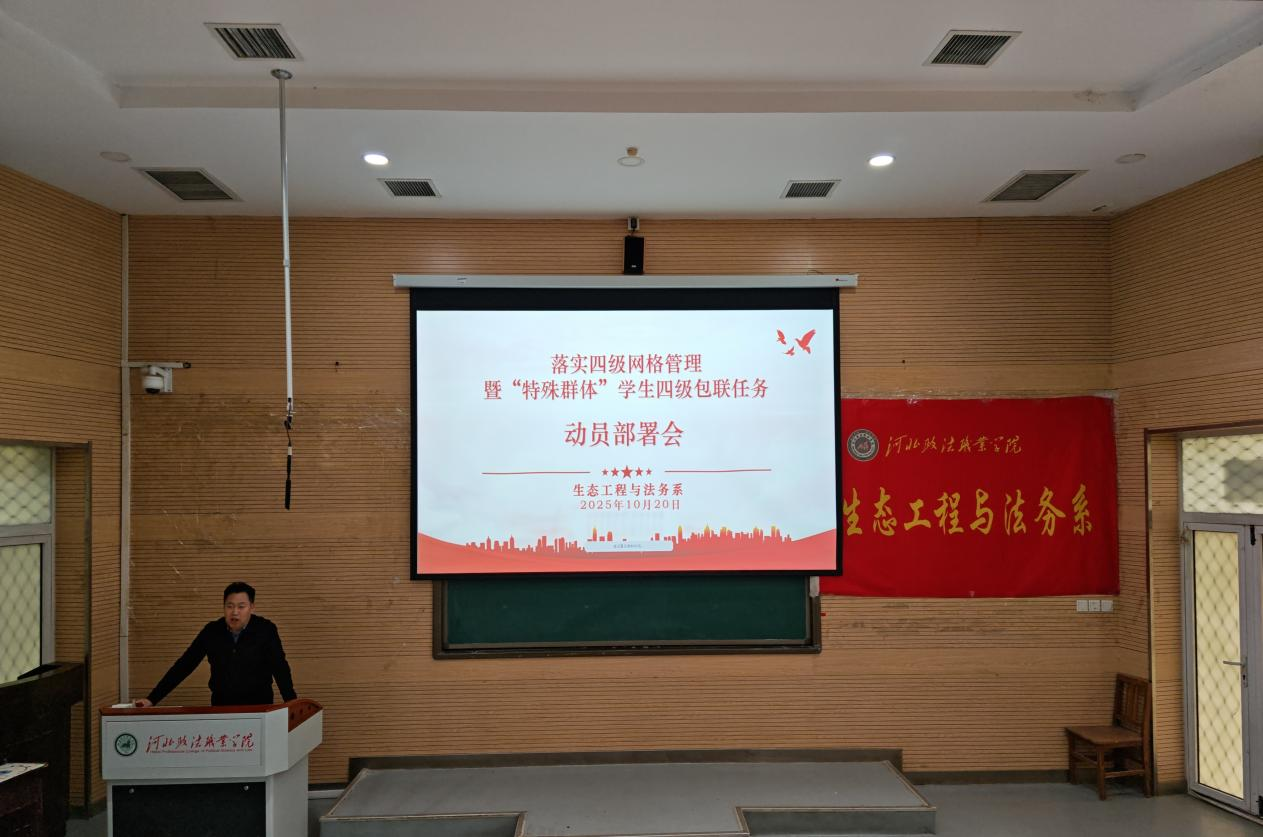 为进一步强化学生管理,有效落实四级网格管理,生态工程与法务系于10月20日召开了落实四级网格管理暨“特殊群体”学生四级包联任务动员部署会。